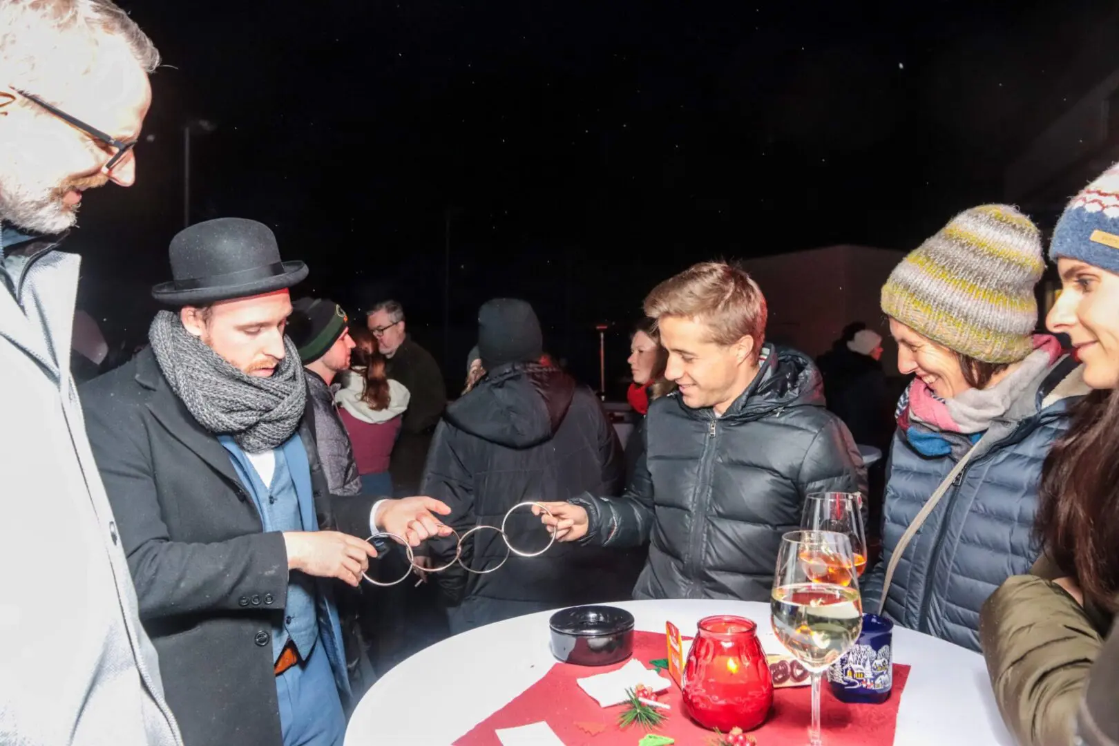 Strahlende Lichter, der Duft von gebrannten Mandeln, weihnachtliche Köstlichkeiten und Party an dem frischen Luft erwarten Sie an Ihrem Firmensitz. In Rahmen unseres Winter-Rundum-Sorglos-Services schaffen wir aus Ihrem Firmengelände ein magisches und gemütliches Ambiente: traditionelle, leuchtende Marktbuden, gemütliche Beleuchtung, winterliche Hintergrundmusik, traditionelle Winterspeisen wie Bratwürste oder Gulaschsuppe. Und natürlich heißer Glühwein und Früchtepunsch sowie verschiedenen Softdrinks, Weine, Prosecco und Bier.